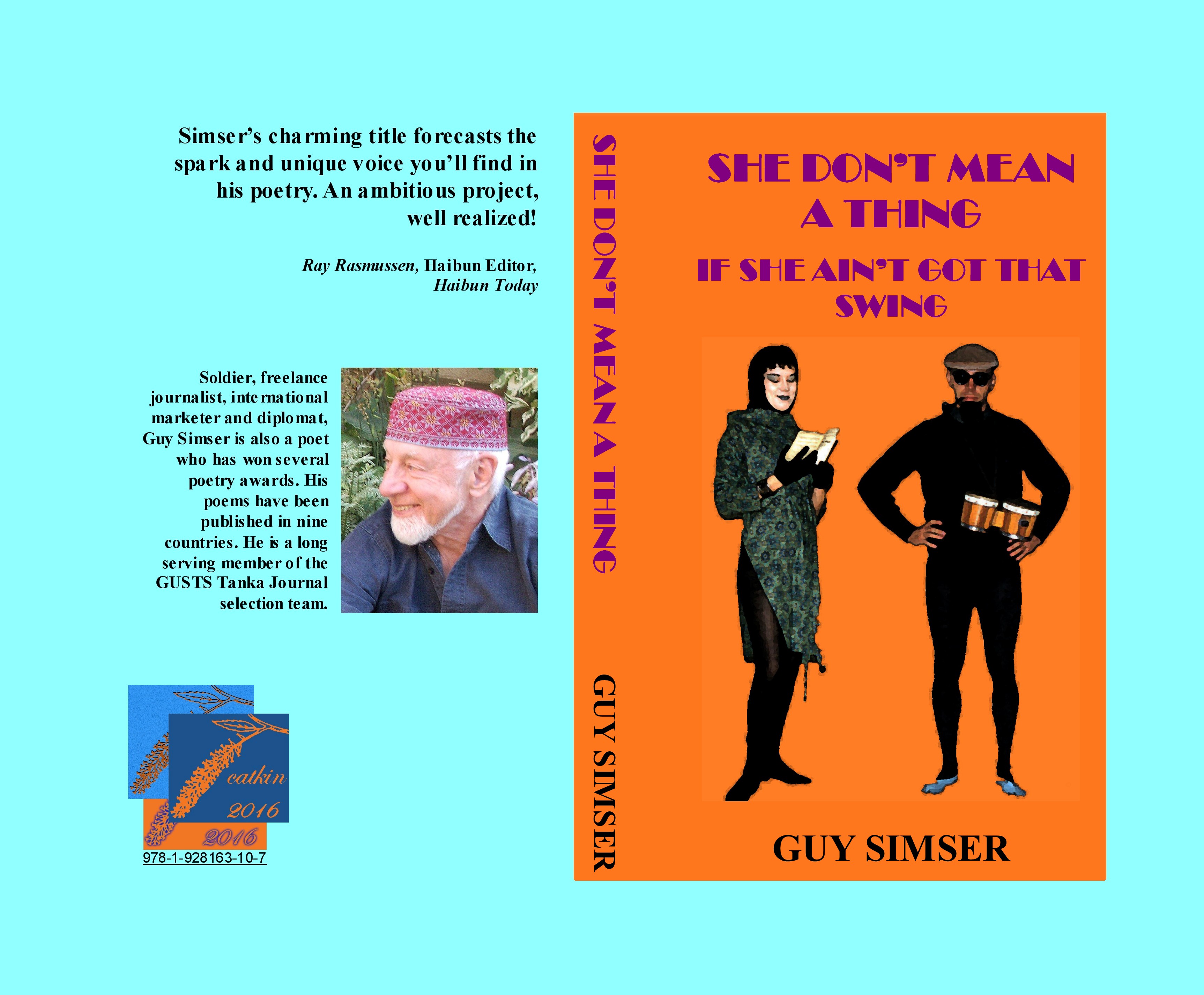 Then another haiku/ tanka/ haibun writer sent me a memoir called She Don’t Mean a Thing If She ain’t Got That Swing that intrigued and amazed me. Guy Simser of Ottawa focused on the love of his life, wife Jan, and on their travels, on the music and activities they shared for so many years. His writing was so rich in expression, description, detail and humour. What could I do except say I’d publish it.