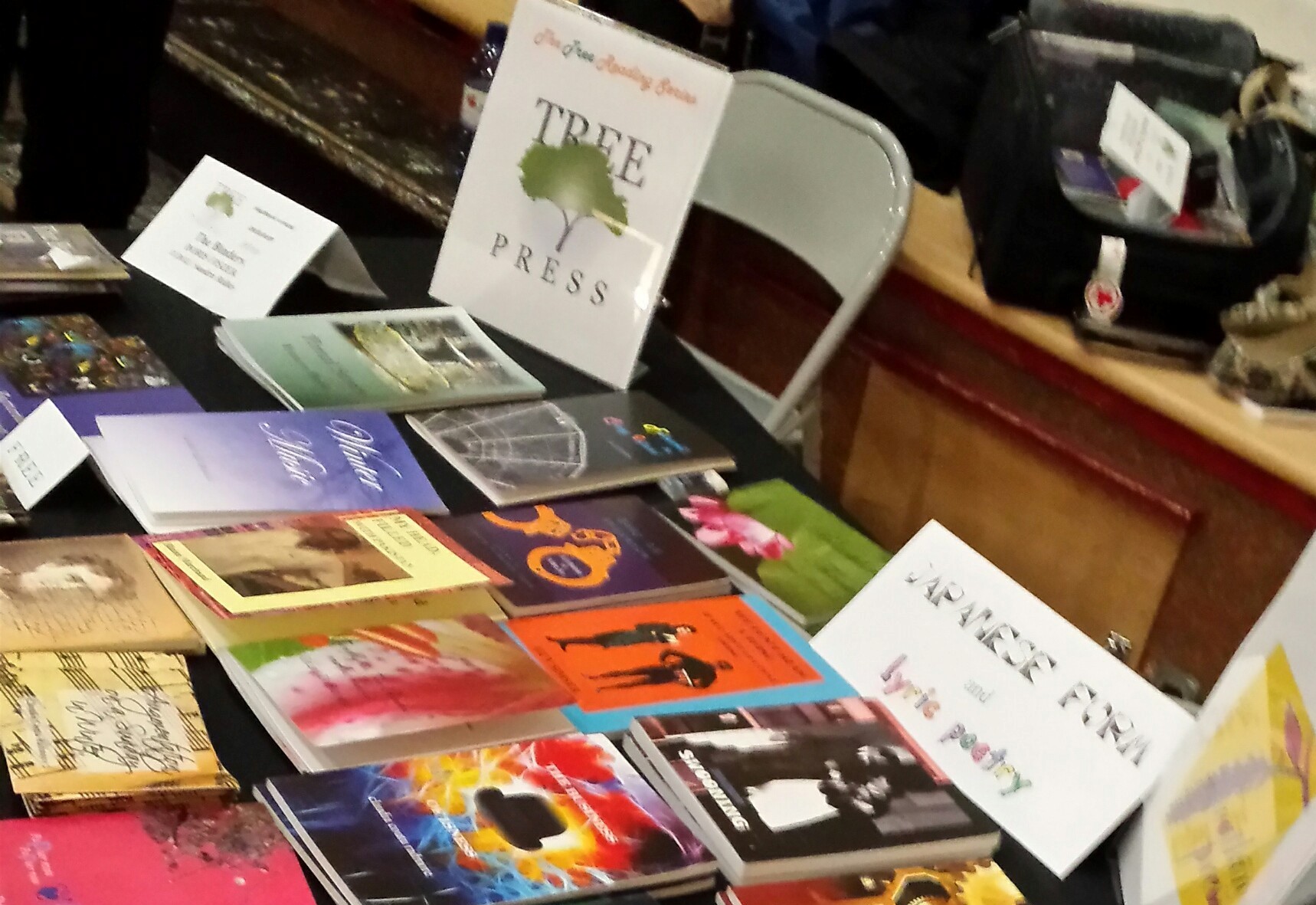 And of course, I was there with two presses, Tree Press (featuring all the Tree Chapbook winners and especially