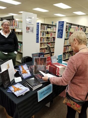 Our examples of publications ranged from chapbooks and hand-made books to hard cover books with dust covers and paperbacks. Tables were set up for our books and for signing those books, and a delectable array of treats book-ended the coffee machine. I don’t think any writer could have had a more agreeable venue, audience, company or organizers.