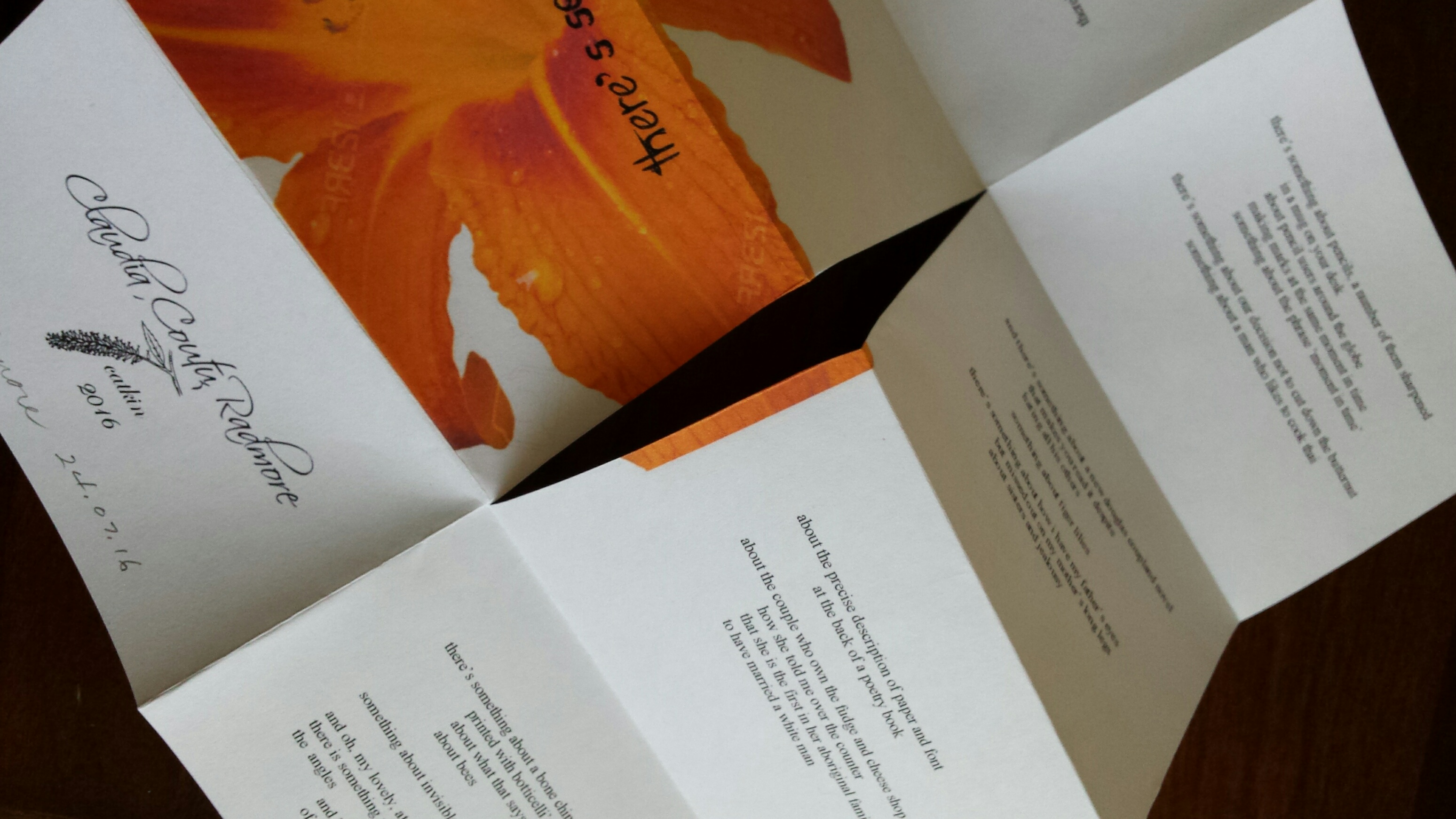 I’ve not mentioned yet how much fun I was having with this project. Suddenly (oh, that old saw, suddenly…) it occurred to me that the phrases that fluttered out as if they were the feathers or individual hairs of some exotic yet verbally-based imaginary creature could be made into a ‘found’ poem of sorts, and I surprised myself that I hadn’t thought of doing this until the poem pieces were already protruding from the pages.