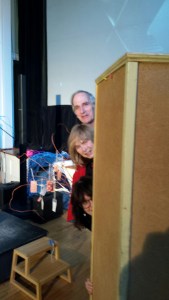 Afterwords we hammed it up, Luce peeking out from the side of the bulletin board, and then the three of us doing the same thing.